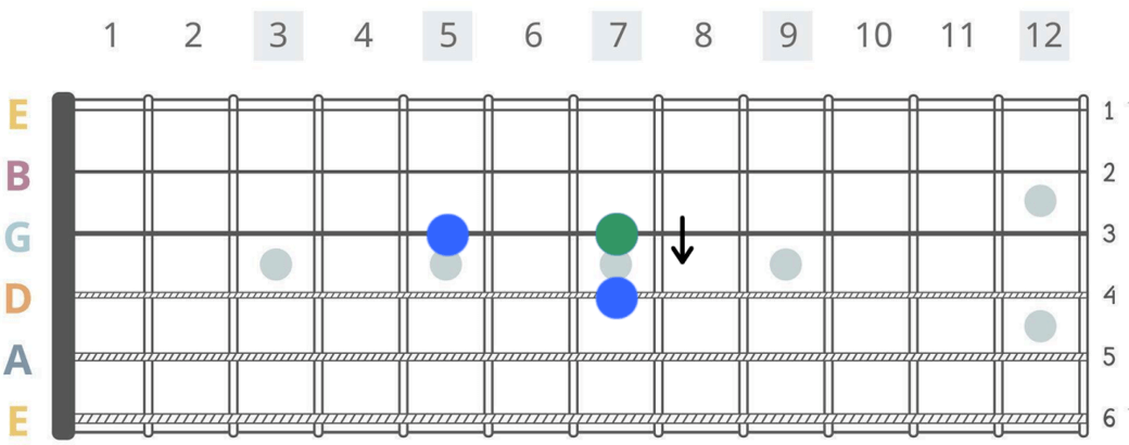 Den gröna tonen kan du böja uppåt för att den där blues-känslan. (Blue-note).